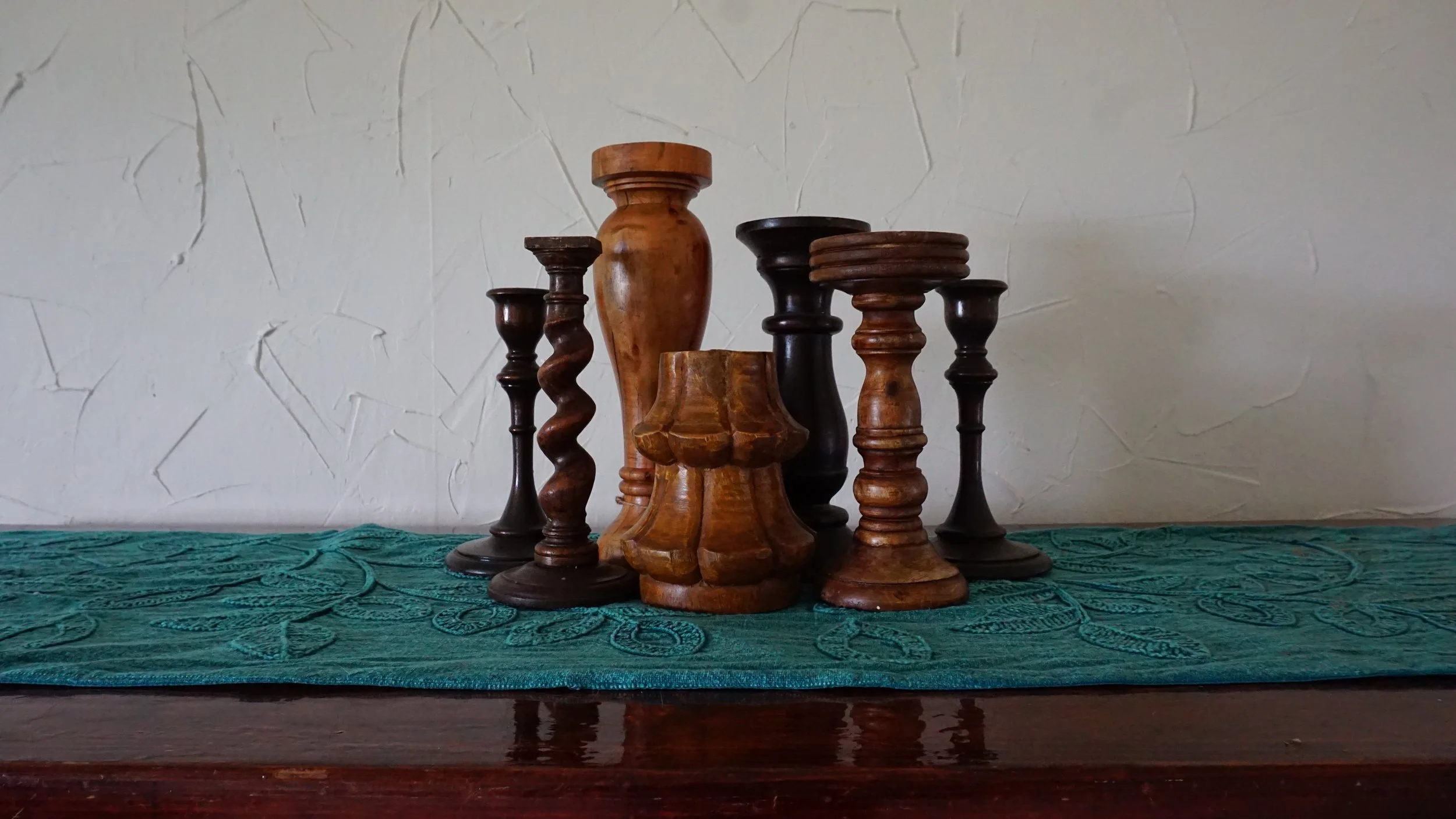 Wood Collection Add some warmth to your table with wood pieces. Wavy Flower Salad Bowls Oak Bowls Wood Cake Stand Curved Walnut Serving Bowl Small Wood Tray Silver Handled Wooden Tray Wood Leaf Serving Trays Wood Pineapple Serving Trays Individual Charcuterie Boards Wood Candlesticks Oval Wooden Bowls Wooden Punch Bowl Set